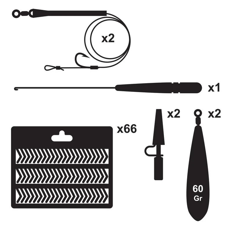 Ce kit contient tous les accessoires nécessaires à pour s’initier à la pêche de la carpe. Les bas de lignes sont prêts-à-pêcher pour plus de simplicité au bord de l’eau.